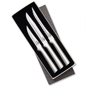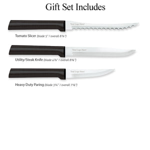 This 3 Piece Gift Set Includes: Heavy Duty Paring, Utility/Steak, Tomato Slicer