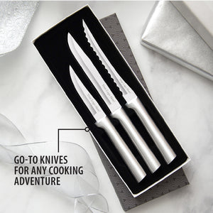 This three-piece Cooking Essentials Gift Set includes three highly used and well-loved classics, the perfect additions to any kitchen and a fabulous way to "test drive" a few top sellers. These knives make essential food prep a breeze.