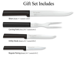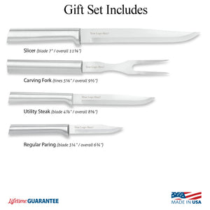 This 4 Piece Gift Set Includes: Regular Paring, Utility/Steak, Slicer, Carving Fork