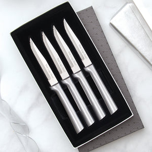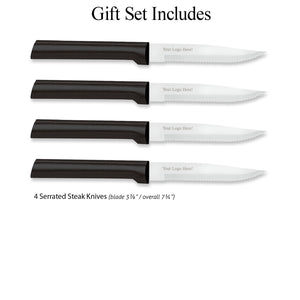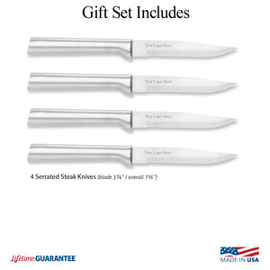 This 4 Piece Gift Set Includes: 4 Serrated Steak Knives