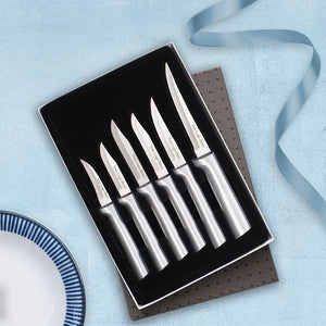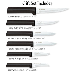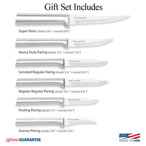 This 6-Piece Gift Set Includes: Granny Paring, Peeling Paring, Regular Paring, Serrated Regular Paring, Heavy Duty Paring, Super Parer