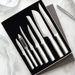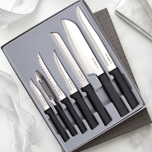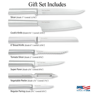 This 7 Piece Gift Set Includes: Regular Paring, Vegetable Peeler, Tomato Slicer, Super Parer, 6" Bread Slicer, Cook's Knife, Slicer